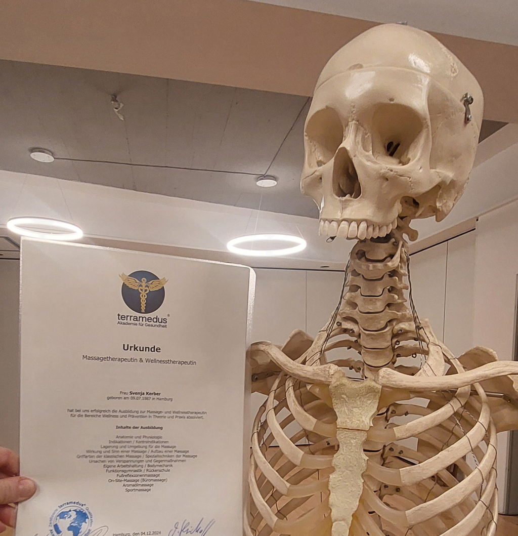 Ausbildung: Wellness- und Massagetherapeutin (terramedus Akademie, international anerkannt).